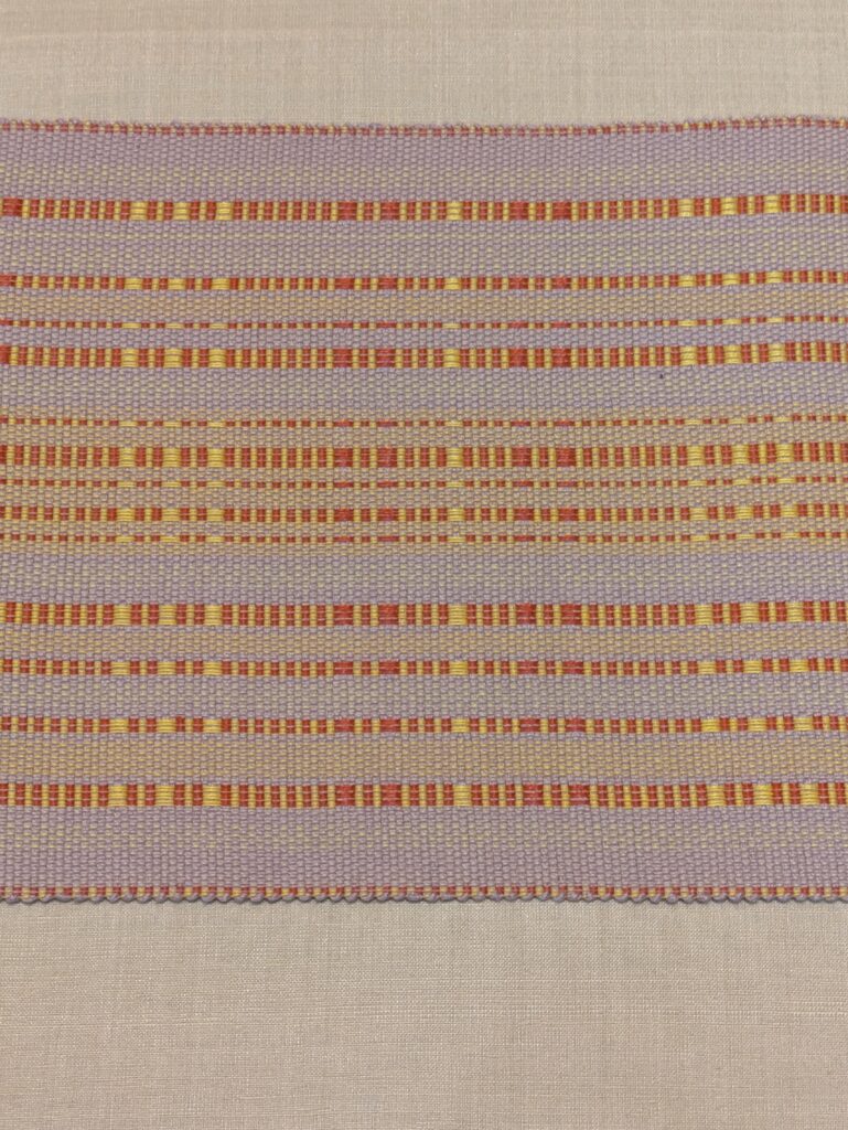 ↑ラベンダー色の地色に、レモンイエローと煉瓦色の凹凸、ロートン織です。